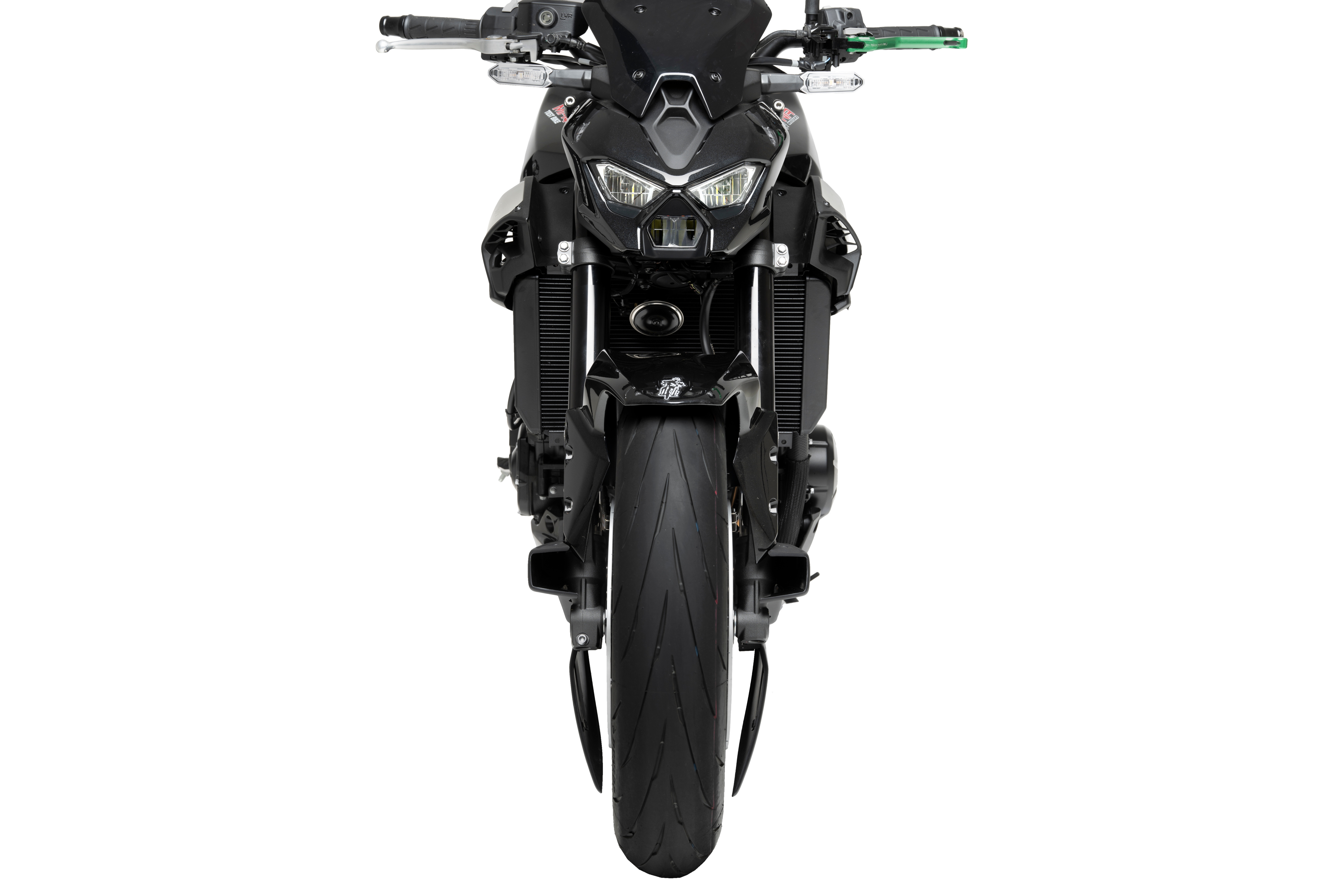 In addition to their more sporty and personalized aesthetic appearance, their studied design eliminates turbulence at the level of the front wheel. By creating a partial lenticular cover, they promote the aerodynamics of the motorcycle, especially at high speeds. These guards feature sturdy, lightweight aluminum brackets, which are finished in a discreet textured black.